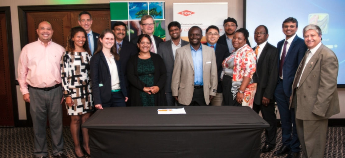 New partnerships between U.S. and South African organizations were recognized during a signing ceremony at the Powering South Africa Conference. From left to right: Jaime Cruz, Millenium Solutions; Edwina Felix, Peer Africa; Carsten Larsen, Dow; Sheila Moynihan, EERE; Bipin Shah, WinBuild; Teresa Scheepers, Municipal Manger of !Khies; Minister Counselor Laird Treiber, U.S. Embassy; Logesh Janarthanan, EMPORes LLC; Dr. Xiahohua Xia, University of Pretoria; Mothusi Guy, PEER Africa; Nothemba Mlonzi, SANEDI Board of Directors; David Mahuma, SANEDI; Dr. Ravi Srinivasan, University of Florida; Barry Bredenkamp, SANEDI. | Photo credit: Ignus Gerber Photography